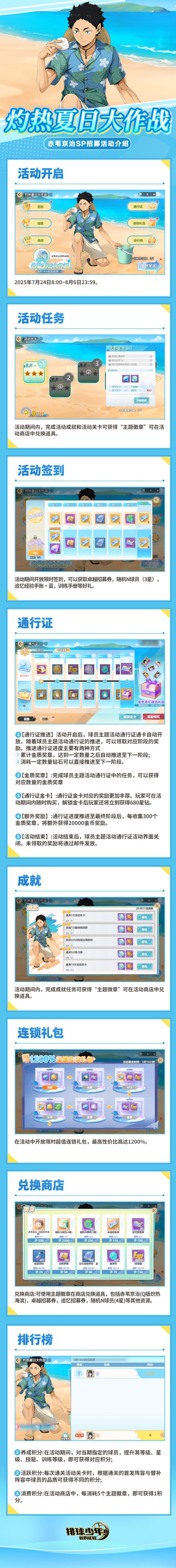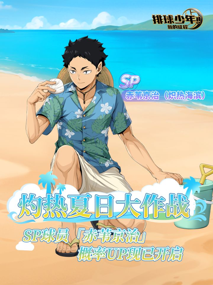 ▶▶招募开启时间◀◀7月24日08:00 - 8月6日23:59🏐【灼热夏日大作战】卓越招募主题卡池现已开启!🏐期间可通过消耗「卓越招募券」招募该卡池中主题SP球员「赤苇京治-炽热海滨(S)」。#排球少年 #排球少年手游 #排球少年新的征程 #排球少年1025新的征程 #一起来玩排球手游