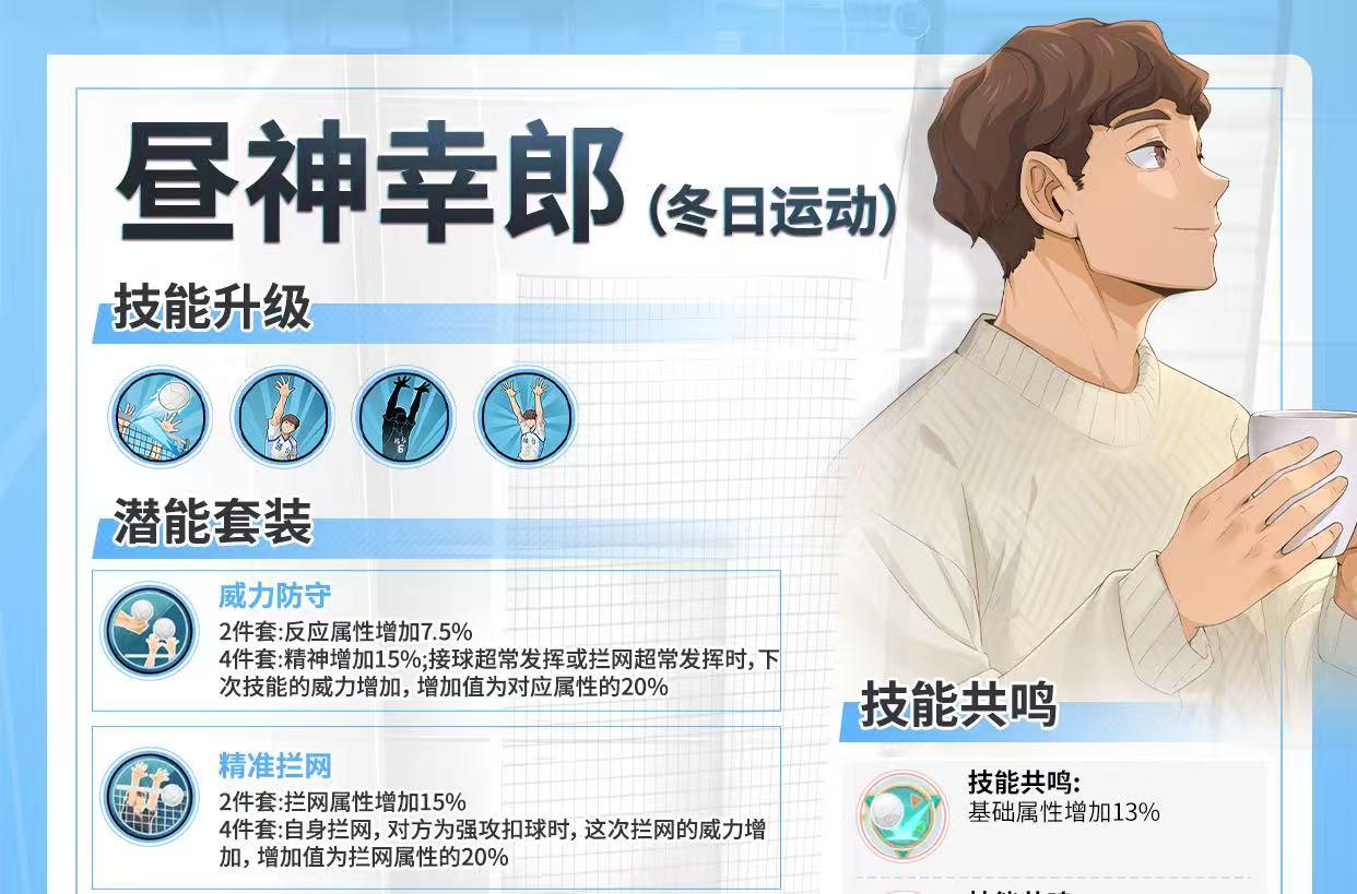 🏐《排球少年:新的征程》SP球员「昼神幸郎-冬日运动(MB)」复刻开启。❄️ 「昼神幸郎-冬日运动(MB)」以「不动」著称,是鸥台的拦网要塞。❄️下面带你一张图了解「昼神幸郎-冬日运动(MB)」适合的潜能套装、适配的追忆、技能共鸣介绍、角色独特羁绊、优质阵容组合!❄️ 快来点击图片查看详情~#排球少年 #排球少年手游 #排球少年新的征程 #排球少年1025新的征程 #一起来玩排球手游