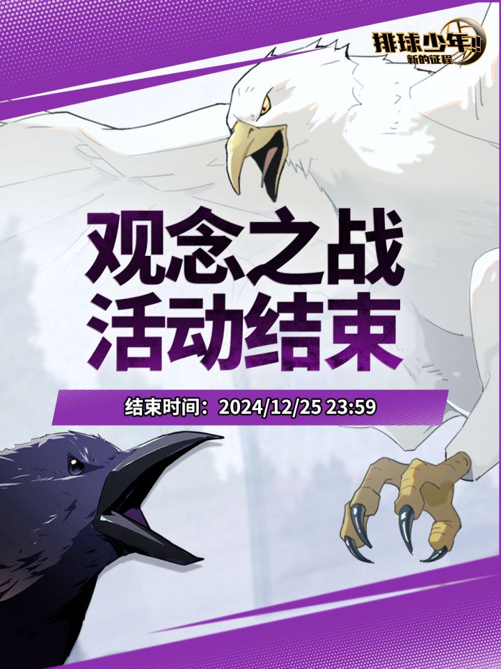 📆活动结束时间:12月25日23:59▷▷期间,参与活动挑战关卡获得的「纪念徽章」,大家记得尽快在活动商店使用兑换,活动结束后「纪念徽章」将消失。#排球少年 #排球少年手游 #排球少年新的征程 #排球少年1025新的征程 #观念之战