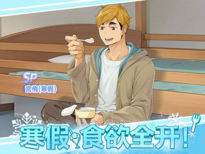 1月1日 ~ 1月14日,全新SP球员「宫治-寒假(OP)」招募概率限时UP!参与同名主题活动「寒假、食欲全开!」限时开启,参与可获得宫治(寒假)专属头像、卓越招募券等丰厚奖励!✨精彩活动内容提炼:1. 全新 SP球员「宫治-寒假(OP)」登场;新卓越追忆「快攻&力量增强 · 宫治(寒假)」上线!2. SP球员「月岛萤-花火大会(MB)」,卓越追忆「快攻&拦网增强 · 月岛萤(花火大会)」即