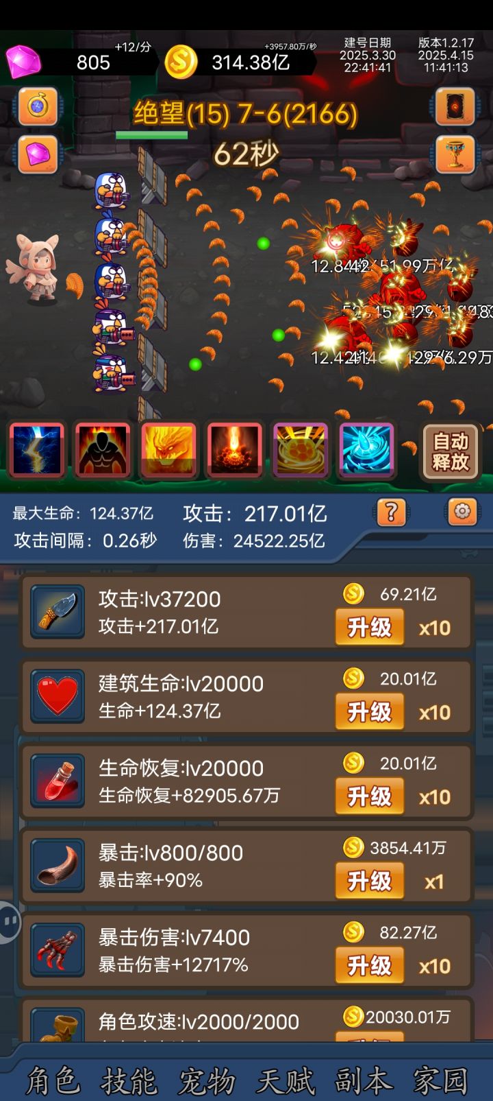 无限关卡模式,各属性慢慢累积,前期抽技能对推关进度帮助较大。