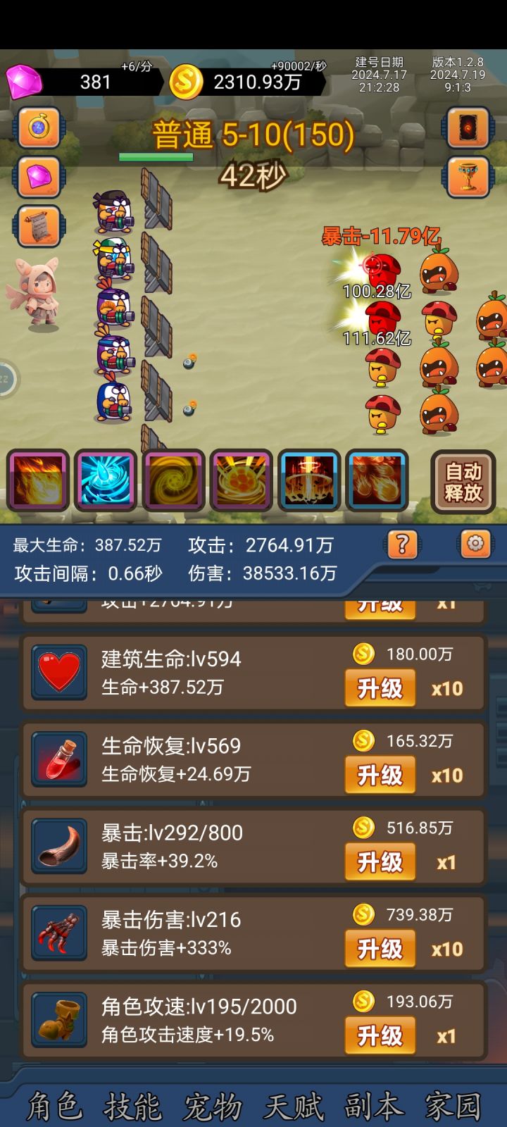 今天第十天不知道玩的怎么样,经常半天才上线一次,每天广告看完,2000关开始怪物就扛不住了,开始搞血量,战魂也换生命扩展了