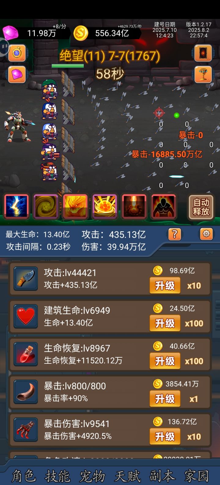 今天第十天不知道玩的怎么样,经常半天才上线一次,每天广告看完,2000关开始怪物就扛不住了,开始搞血量,战魂也换生命扩展了