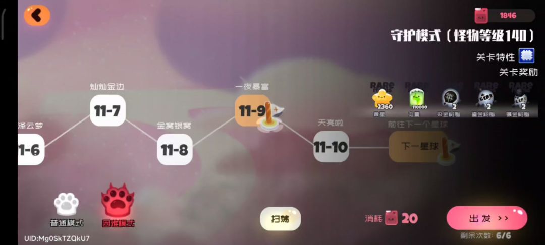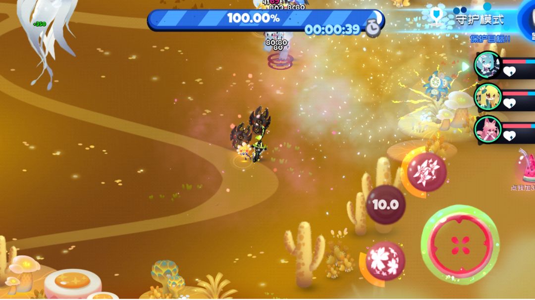 !!前情提要!!逃课是指:护住守护物成功撑过三分钟就算胜利✌🏻而不是清怪!! (如果所有怪物不被守护物吸引而被人物吸引就把移速调到5然后转圈就好) 11-9逃课之萌新四件套 ps:易获取阵容配队人物就明烬,白漓,朵朵,橘九这四个随机搭配,宠物则为打call,灯点儿,和云 ①阵容一:明烬白漓橘九(推荐) Q:为啥这样配? A:明烬加护甲提供韧性减伤且是对全体生效(包括橘九的橘子树和守护物),橘九的橘