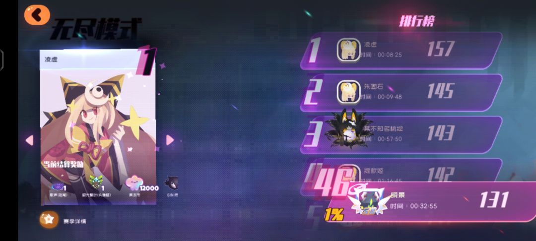 我这套阵容算上这期已经用了三期无尽了,突出特点就是个安逸,白绒绒和暮云羯都有眩晕,配上猫改可以增加容错,开局聚完怪以后就是无脑打桩,把白绒绒换了输出可以更高,暂时先打到了131层。