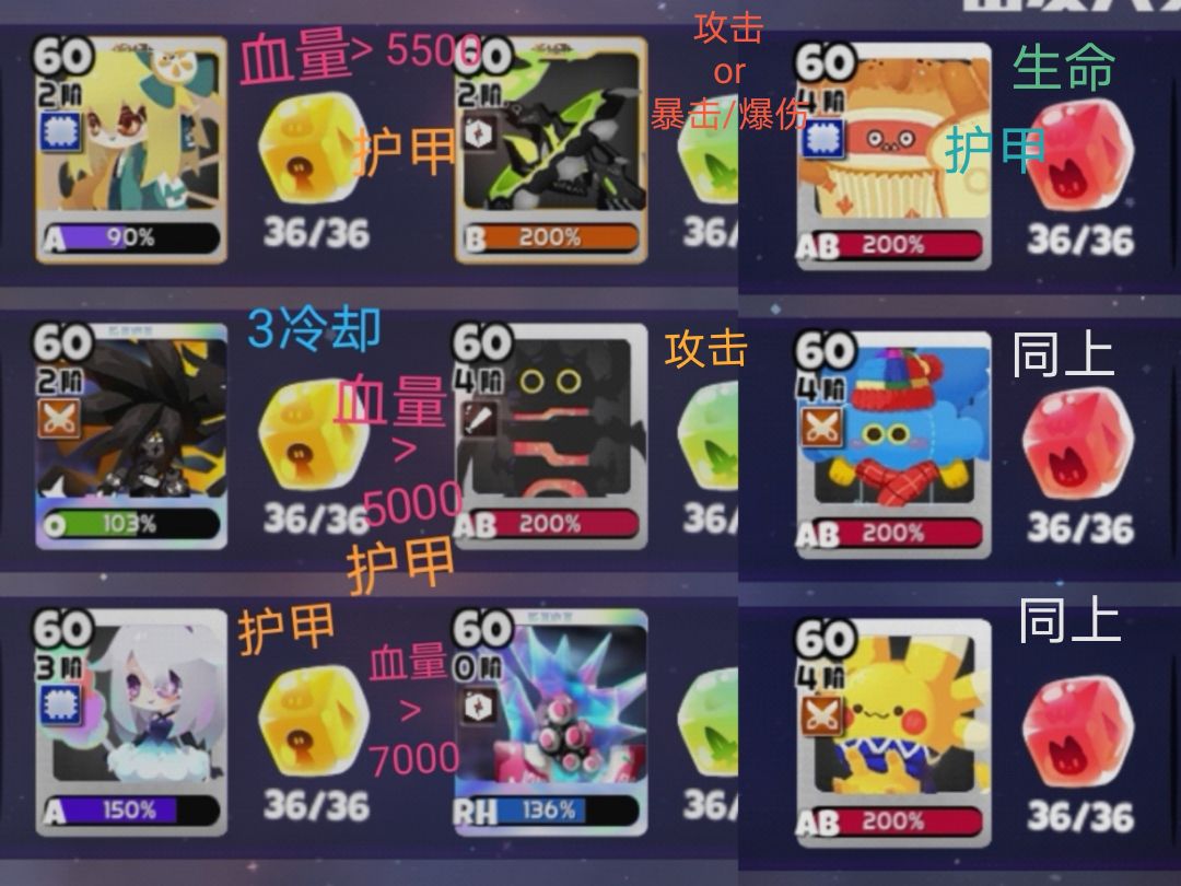 该阵容适用于:番外全难度BOSS关,及其他BOSS关 歼灭关请看: 守护关请看: (方糖标在图上,多多益善) ①6月更新后无法一击秒杀困难BOSS了,需要带三个鸡块! ▲不可替换方糖:9个技能强度、9个暴击伤害 ▲不可替换:妖炽、白绒绒 △输出就差那么一点,灯点替换成4星鸡块 ②盒子一拳持续输出 ▲不可替换方糖:武器4爆5攻速 ▲人物需叠足够的血,不要被秒 【组建思路】 妖炽减掉BOSS高额护甲,
