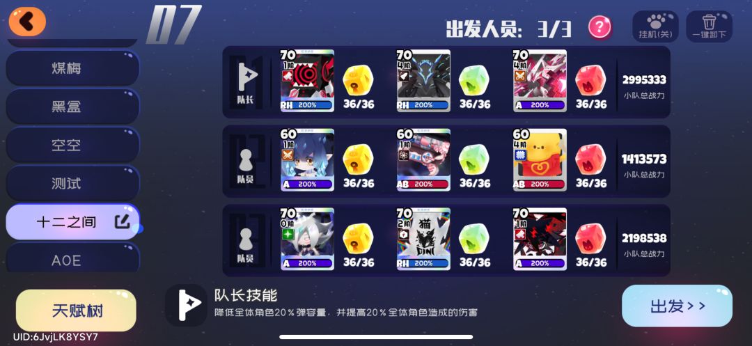 1萌新队: 游戏前期大部分人都在用的队伍,养成简单,可以用来打七星资源关,如果没有水晶刺可以换一个能量类武器,剩下一个宠物,如果没有七星的宠物的话 ,就用一个四星鸡块 ,剩下一个角色就用你目前伤害最高的c,萌新这里推荐 2彩虹枪队: 萌新优先练的队伍,就是利用彩虹枪子弹反弹的特性来刷黄金山,没有库克就选一个技能范围大的过渡,但其余两个必不可少,巨灵方糖选一个超阶可以减冷却,没有七星宠物就选三个呼
