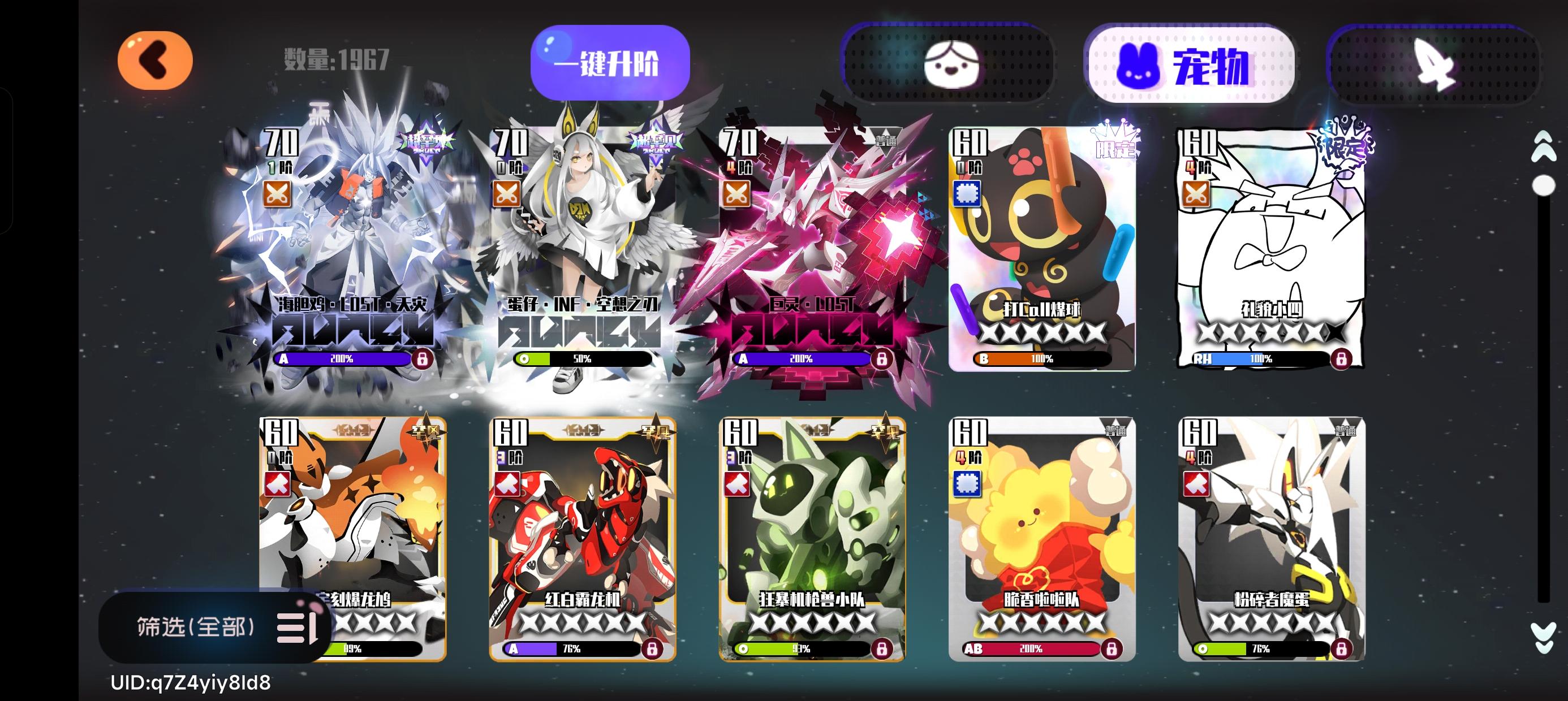 这个月刚玩,实在闲不住手痒断断续续抽了62把橘子抽出来了还剩100抽,不知道要不要抽专武,主线卡10-6借助战过不去,也打不过七星资源关😭角色是看网上攻略和自己摸着养,有没有推荐立刻培养的角色呀,不知道橘子好不好用?还有求一个大佬好友位😭求求了😭😭😭