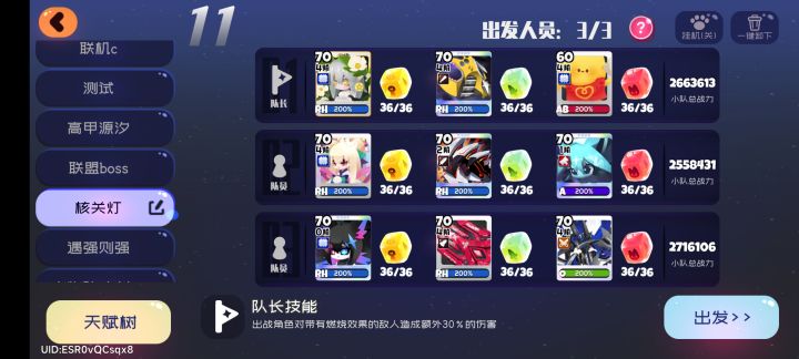 阵容如下:方糖搭配:人物全带冷却糖,武器凑90暴击剩下带暴伤,光环宠全带生命糖,终结者凑90暴击剩下带暴伤(终结者伤害很低,方糖可随意)血型搭配:黑盒(队长)rh血,乐乐、xh5血型随意;武器全rh血;光环宠全AB血,终结者A血天赋树选择:boss机制:由上图可知,该boss每受到一定次数的伤害将会叠加免伤与武器免伤,对高频次攻击阵容(尤其是以武器伤害为主的阵容)有着极大的克制;玩家受