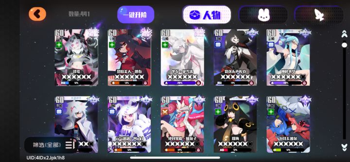 #弹力果冻 回忆一下过往那些陪我到现在的角色,还有我比较喜欢的角色。٩(๑•ㅂ•)۶带我黄金山的库克,现在带黄金山的黑绒绒。我第一个c毁灭联机boss的大燃春,第二代联机主c霁华,第三代联机主c狐渠,第四代联机主c黑盒和第五代联机主c煤梅。_(:3 ⌒゙)_开荒时期用的鱿鱼,以前当主力玩的7星栗君,当了我一段时间助战的蜘蛛和冰雪女王。带我第一次通过12间的失控落樱,带我通关每期12间的雨神