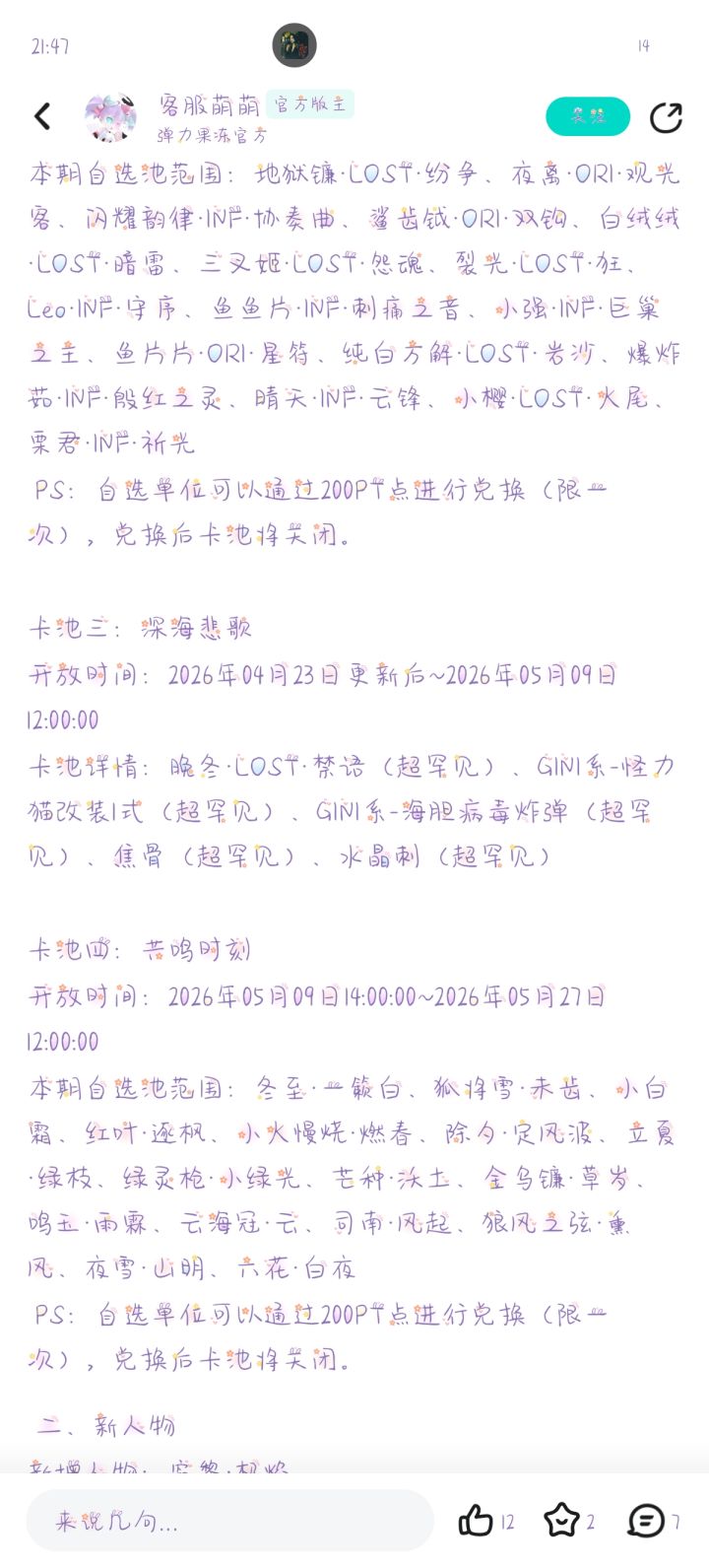 亲爱的小果冻们:我们将预计在2026年04月23日14:00-17:00,对服务器进行停机更新,整个过程预计需要3小时,在维护期间,您将暂时无法进行游戏,建议您提前结束关卡下线,给大家带来的不便,我们深表歉意。★维护区服:安卓,iOS★维护时间:2026年04月23日14:00-17:00★维护补偿:果冻币*1000,燃料*120,扫荡券*40。★更新内容:一、限时卡池开放卡池一:夏