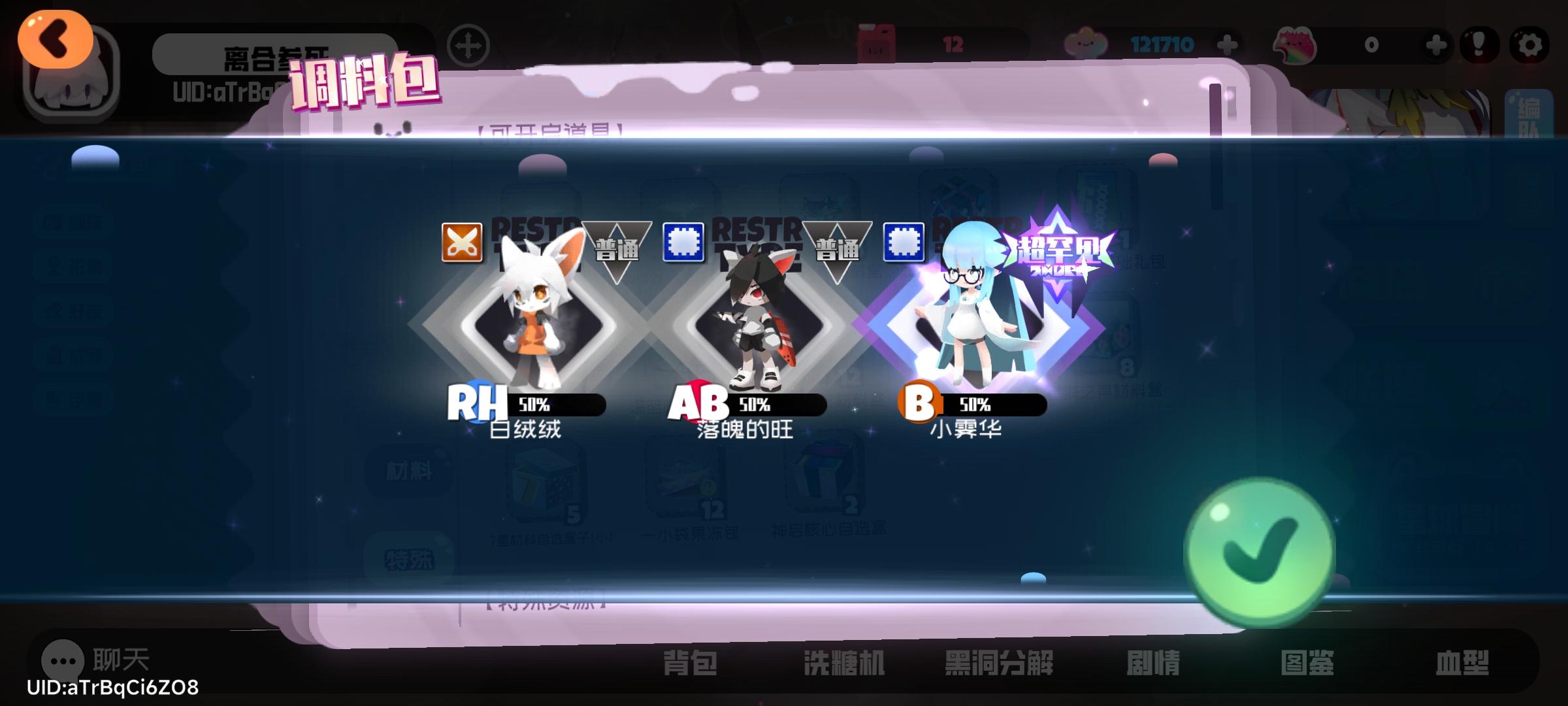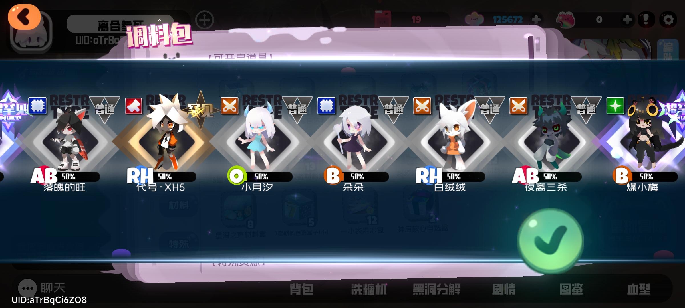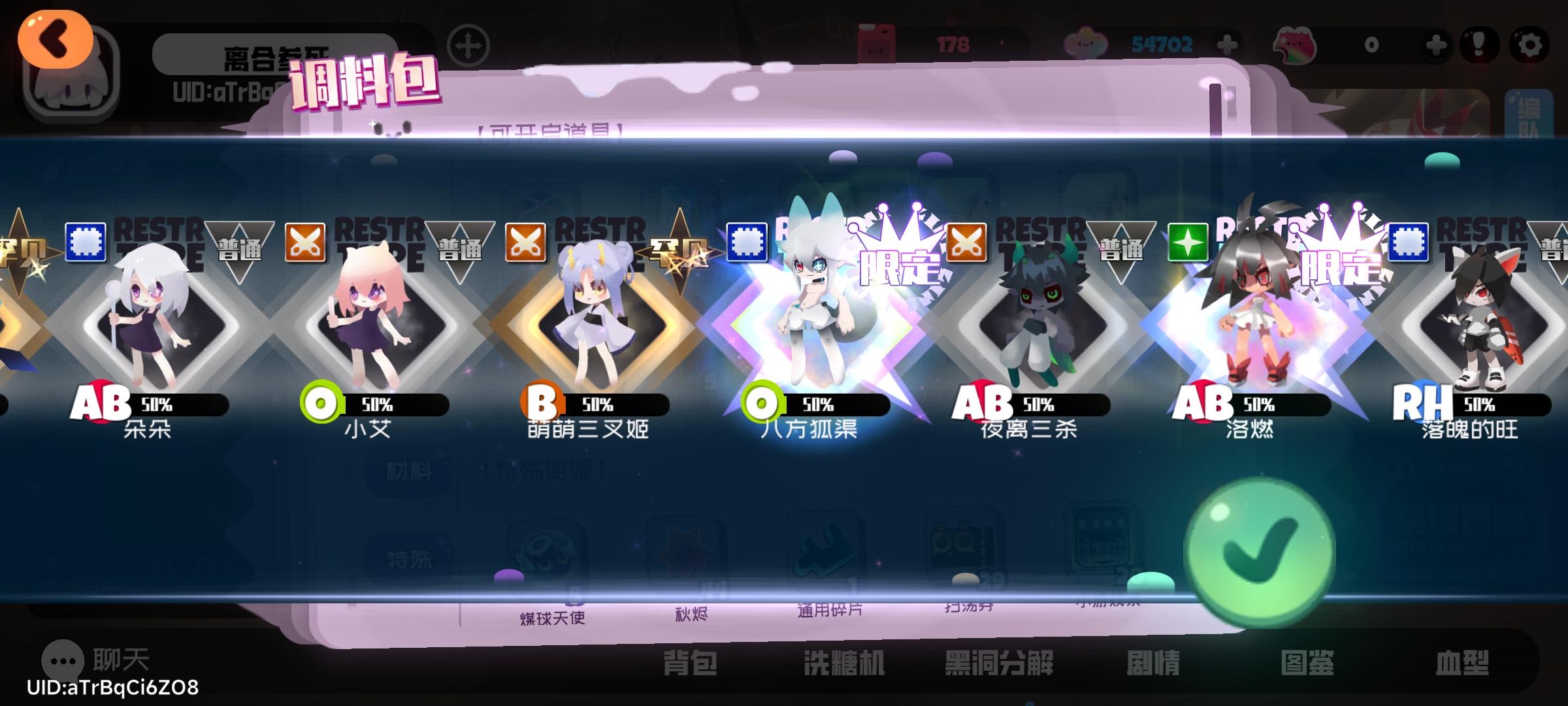 这概率比同行抽卡出货的概率都高了,7%超罕3%限定这是人啊(一看卡池超罕5%,那没事了),入坑俩月赌出霉梅,库克,maki,水桶,霁华,还有限定的洛然,狐渠虽然能用的就霉梅,库克持续出货之后,就蠢蠢欲动,老想分解赌盒子了,单从强度方面来说,好像没必要,从收集图鉴的角度,没保底,纠结