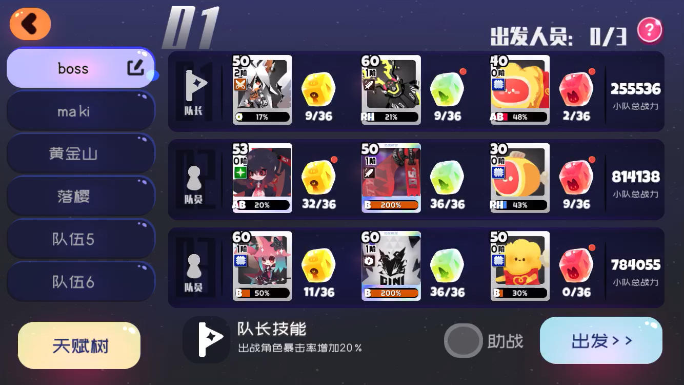 朵朵和三叉带技强,小妖炽带cd。 没有四阶派对mao的,带上你的第二把键盘inf。 天赋选择同阵营加伤4%+剪刀4%。 海胆鸡洗O血,带暴击爆伤。 打call跟鸡块全血糖,洗上S护甲+S生命词条。 剪刀带暴击爆伤,键盘暴击爆伤。#攻略大师