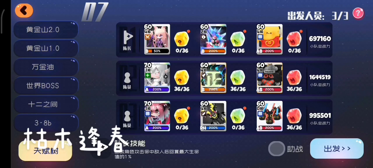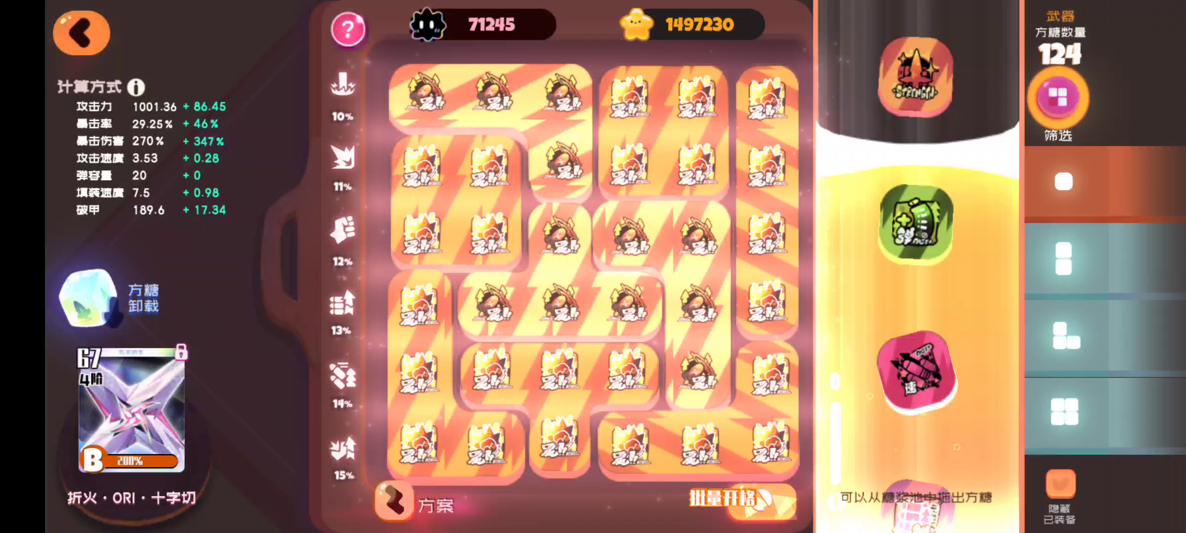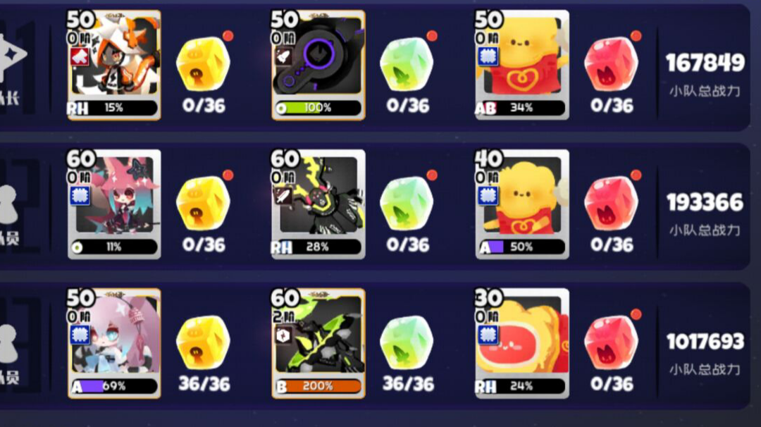 本次技伤减半,但依然不影响全屏队的强势,优势是生存能力很强,黑樱无敌橘九清弹幕。缺点也很明显,瞎眼看不清地图。 方糖黑樱带两块cd对轴,其它人物cd,武器也就是暴击爆伤。 不要带水晶刺,不如剪刀。带着纯属想试试效果。
