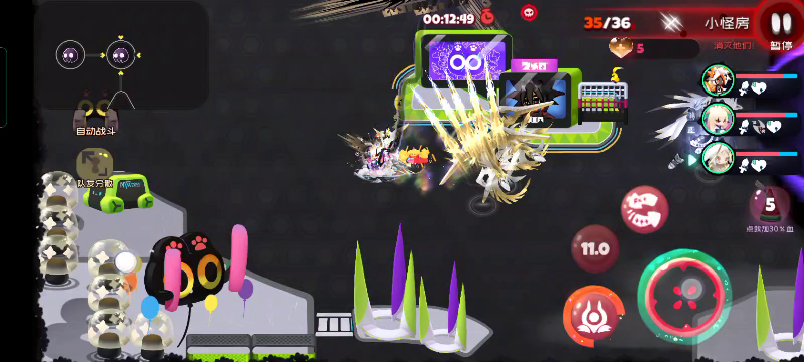 相信很多人看过橘九和朵朵两人通关视频,但对两个人物cd糖要求比较高。借鉴了大佬们通关视频得出的阵容 阵容:白漓(队长)+橘九(方糖不用全开,有一定的减cd就好)+朵朵 宠物:有达拉最好(能减怪物攻击),带云是担心去放加血技能时被打到而暴毙。 可以看到我除了橘九带一部分cd糖外其它的可以不带糖。 白漓开技能后小怪是基本动不了的能拖很多时间,也能让其它技能cd有时间恢复。 (第一次发攻略有点小紧张,希望能帮到卡困难11-9又没有高配置的小伙伴们,因为不常逛论坛也不知道有没有人发过这个阵容)