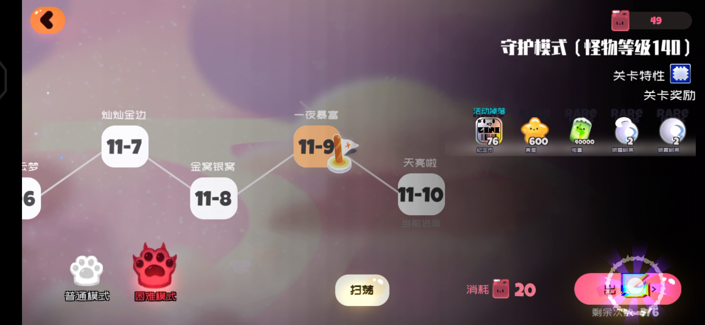 困难11-9 单乐乐酱无需糖和武器 ,进图找角落挂机即可