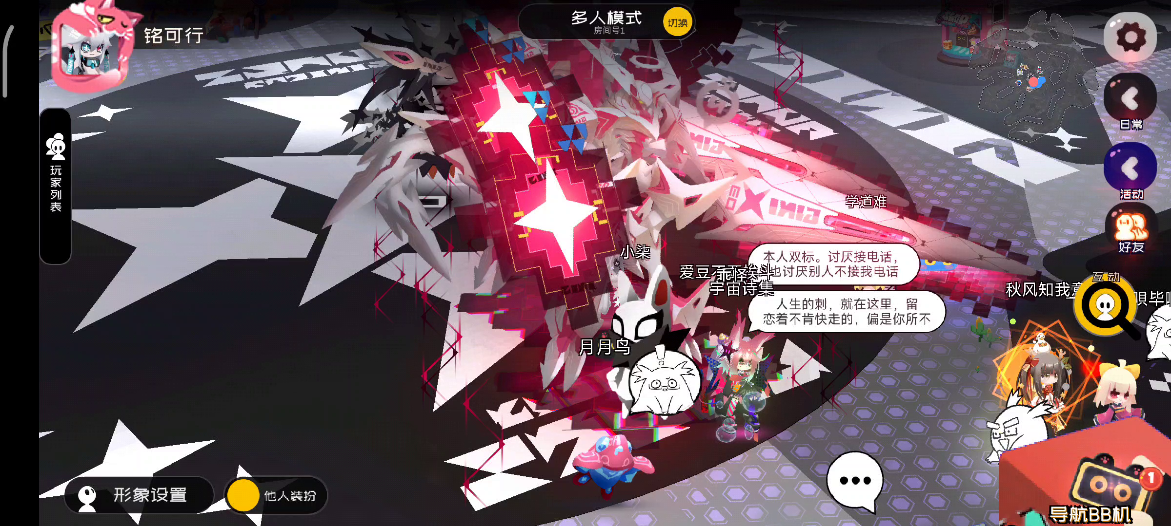 一共两个 一个是一玩这个小游戏就会本体瞬移走,哪怕是站着不动点的游戏机也会飞走(¬㉨¬) 另一个是玩合体叭,落樱的时候有几率点一下就直接起飞碰到天花板(●—●)