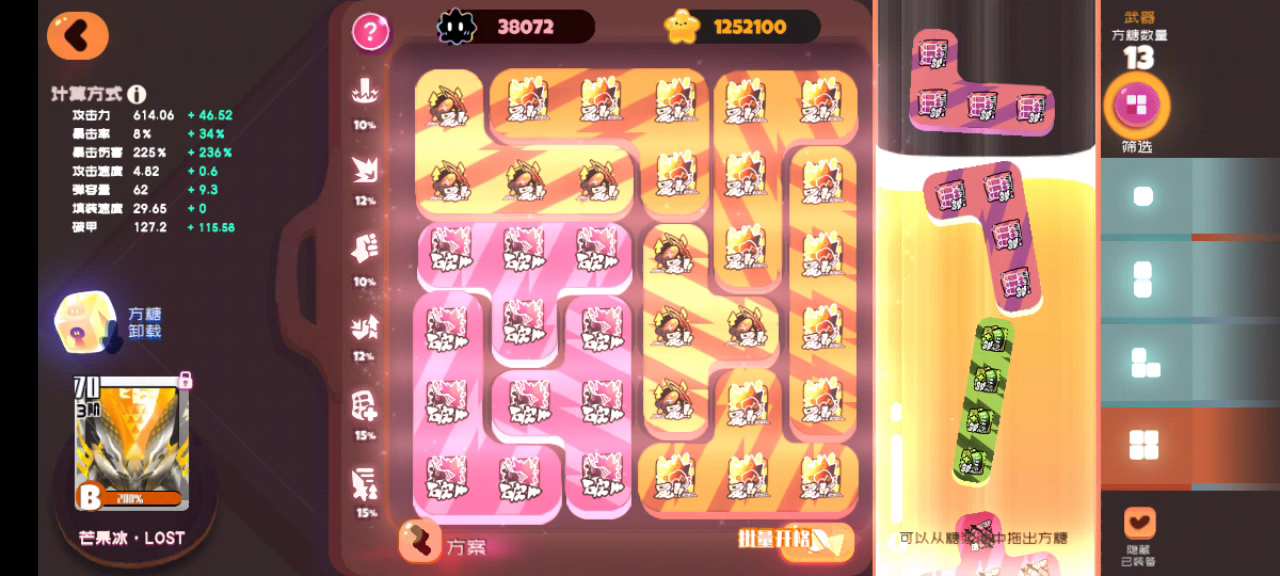 零菜园大鸟侠挂机10-10困难攻略 注意红蜂一定要四阶七十级,攻击,爆伤和破甲S,暴击率在配合方糖或者海胆鸡时达到90以上,缺破甲补破甲糖,不要用巨灵,会把小怪推走,副C用小妖炽则需要向上走位手动技能避免小怪跑出破防圈,其余就是有什么好武器好方糖都可以满上,六星云防止暴毙,视频中可以看出大鸟的技能还有一截,爆伤不太高也可以有余力。
