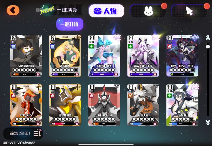 就图上这些角色了,武器的话落樱和Maki还有一些有武器,现在是攒果冻还是什么,3s黄金山有一套阵容能玩