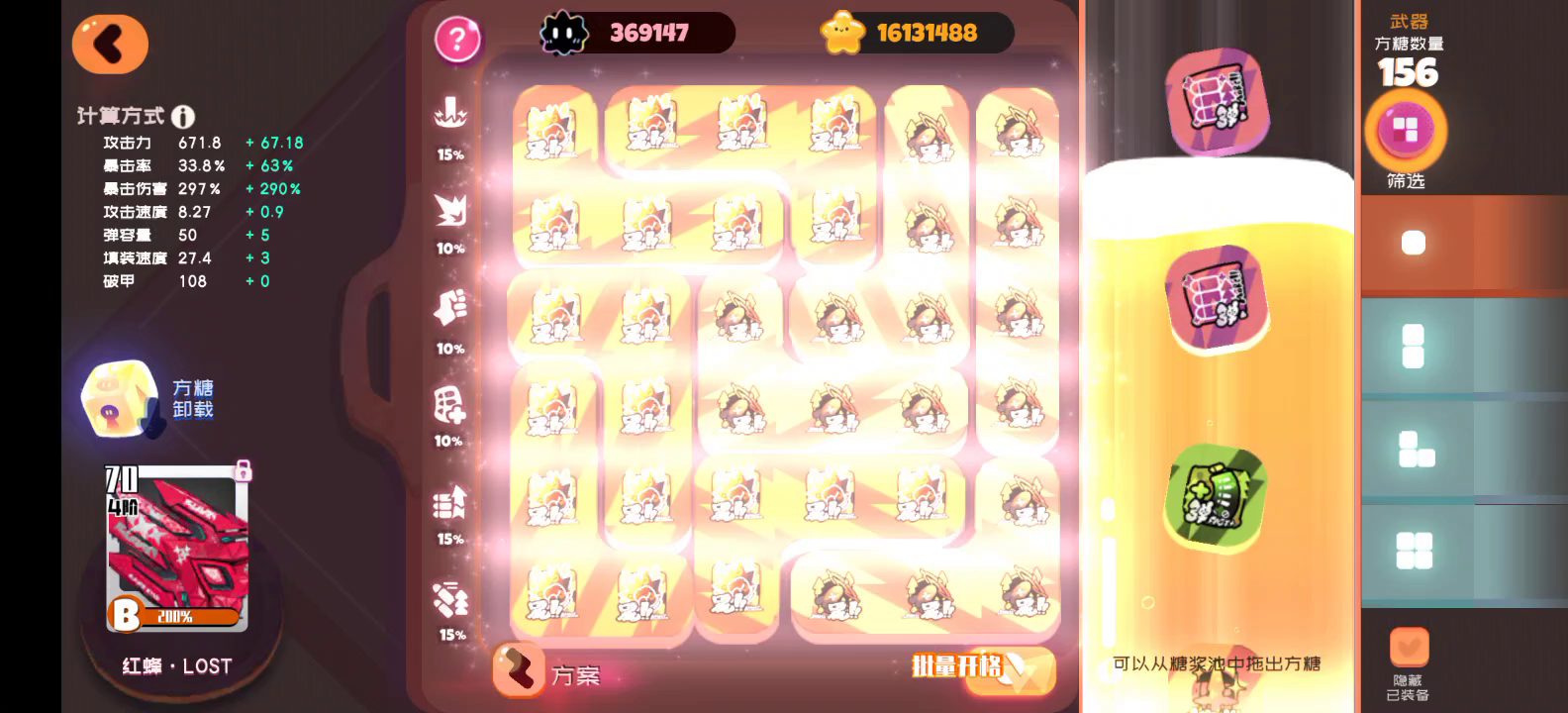 方糖人物是满技能,武器是四暴击五爆伤,宠物是三暴击6爆伤