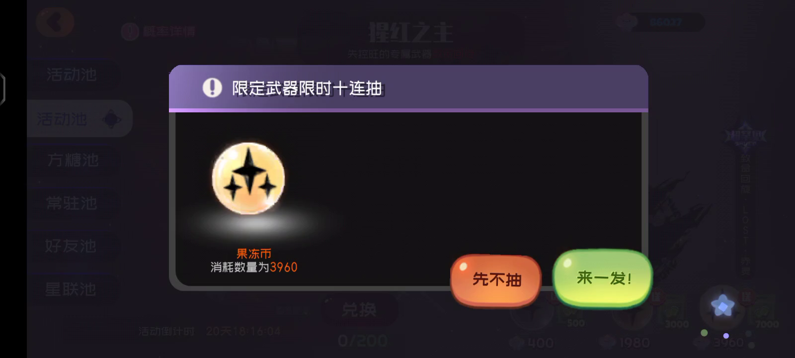 弹力果冻你给我听好了,你人挺不错,活动和福利也挺多,可是我就差一点就能40发解决战斗(五发免费不算),你知道我的痛楚吗?弹力果冻官方,吃我一个赞(撕心裂肺)