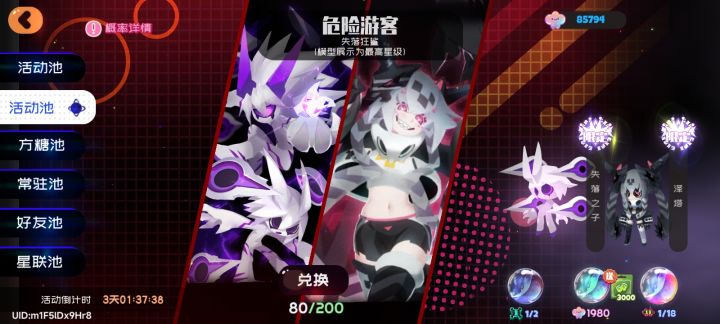 20抽抽到想要的maki,还剩6.3万果冻币和2个十连卷,留到下一期给扳手吧?活动送小四,好耶,几年前玩国际服,不久就卸载了,国服现在玩了26天,虽然现在玩家很少,游戏热度也低,吐槽也多,但还是接着玩吧,希望游戏更好一些联机现在只能打第一关,7秒,失控配队是子夜+黑樱+失落/黑樱+妖枳+失落,主线星期还差最后一个,靠助战也难打过,白绒绒和xh5暂时没在用,还是想2c加
