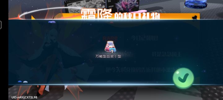 20抽抽到想要的maki,还剩6.3万果冻币和2个十连卷,留到下一期给扳手吧?活动送小四,好耶,几年前玩国际服,不久就卸载了,国服现在玩了26天,虽然现在玩家很少,游戏热度也低,吐槽也多,但还是接着玩吧,希望游戏更好一些联机现在只能打第一关,7秒,失控配队是子夜+黑樱+失落/黑樱+妖枳+失落,主线星期还差最后一个,靠助战也难打过,白绒绒和xh5暂时没在用,还是想2c加