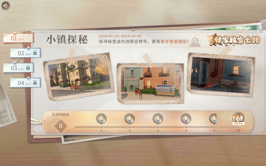 完成『小镇探秘』活动,可领取内测限定称号和一套服装图纸,大家不要错过啦 视频链接如下—— 【Day1】『小镇探险』活动秘宝点位攻略 https://www.taptap.cn/moment/564811306834593821?share_id=4cc7124b5fc5&utm_medium=share&utm_source=copylink 【Day2】『小镇探险』活动秘宝点位攻略 https: