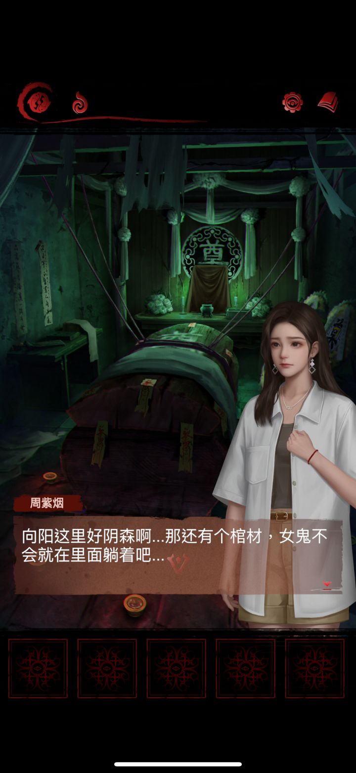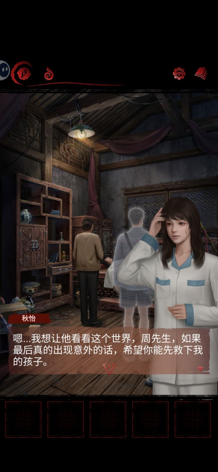 最后一章逻辑性不是很强 就让人很难往那个地方去想 也可能是我笨嘿嘿 不过不用看广告 我一开始发现还乐呢 我以为是我把广告卡没了 最后发现大家都不用看广告呵呵呵 有一个地方有点问题 ‼️第一章有个地方是个小游戏 是有个小鬼挡路 (p3前面那个⬆️)小鬼探头的时候点击 我当时试了好多次 我想了半天这个怎么玩 因为我那里根本没有小鬼探头啊啊啊啊啊 试了好多次都不行 我还是去搜的才发现是有小鬼的 不然我根本不知道那关是个什么东西 最后跳过啦~我也不知道为什么会这样子 前面几张的解密都还好 不会很难 还玩到了很经典的华容道 这个华容道比我玩的其他的恐怖游戏里面相对比较简单~游戏有宣传传统文化的意识还是不错的