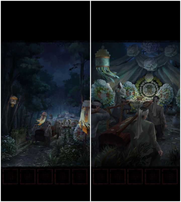 中式恐怖氛围营造得恰到好处,纸人祭祀、红棺引路等民俗元素极具代入感,画面细节满满,神龛、风铃等场景设计透着阴森美感,音效虽不突兀却能精准勾住紧张情绪。解谜难度适中,经典的华容道搭配灯笼辨真假这类巧思谜题,解开时成就感十足,提示系统也很贴心,避免了无效试错。