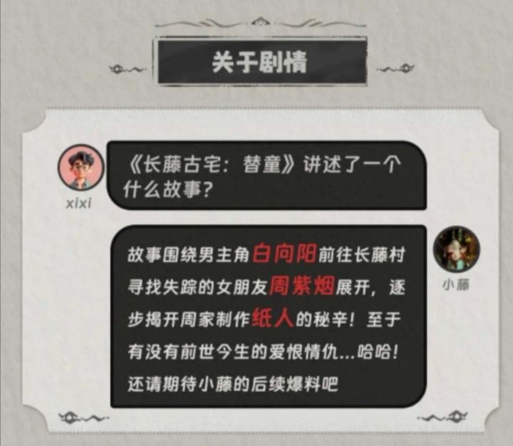 恭喜以下玩家获奖~ 获得奖励的玩家,请在1月20日的12点前,加入官方Q群577038962,并且私聊群主进行领奖。确认身份后奖品会在30个工作日内发放!线下密室头部品牌<长藤密室><长藤鬼校><异次元密室>三方联合打造——《长藤古宅:替童》12月31日10点!首发上线!玩家大人们跟紧小藤导游,可不要……迷,路。哟。《长藤古宅:替童》,历经近一年时间,终于能和大家见面。 与此同时,有