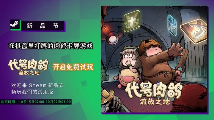 《代号肉鸽:流放之地》本次新品节带来新的demo版本,第二章地图开放了更多的关卡、调整了部分战士卡牌、怪物卡牌的效果、新增了新的卡牌和天赋等内容,欢迎新老玩家都可以体验新品节的游戏版本,欢迎前往免费试玩/添加愿望单,我们预计24年第四季度上线正式版本。新品节北京时间:2024年10月15日凌晨1点-2024年10月22日凌晨1点,点击下方链接即可免费试玩:加入我们,了解更多信息: