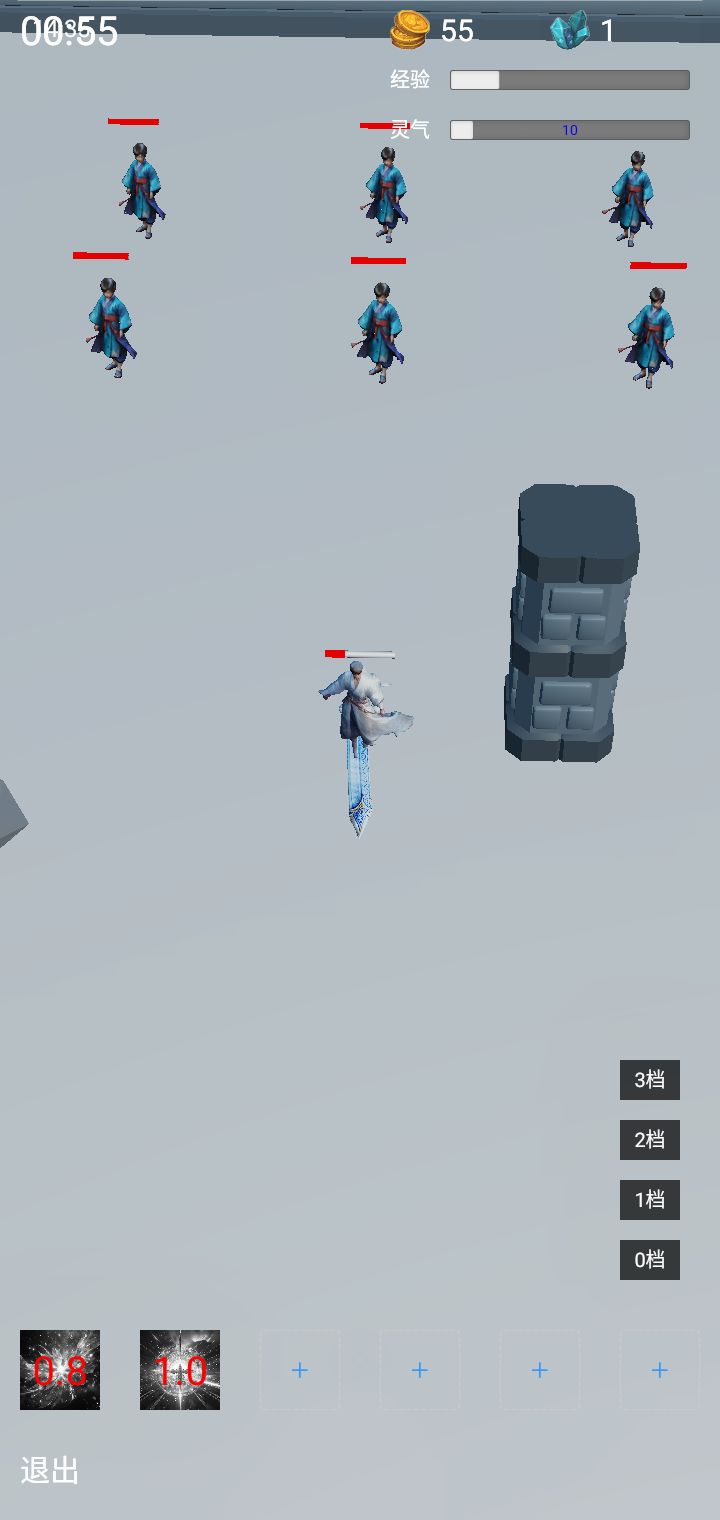 这个游戏升级还是比较快的,每个地图都不大,都有一处可以练级的地方,会掉落材料,装备,功法,弹药之类的,打不过升几级应该就好过了,达到小境界满经验的时候,右上角经验那里会出现一团火,点击会问你要不要渡劫,渡劫失败修为会受损,经验掉落下一级,成功会渡劫到下一境界,击败天劫可以到下一境界第二阶,前期一个境界分9层,中后期一个境界分初期,中,后,圆满期,功法升到9层都会有特殊效果,有的加攻防攻速移速,有的