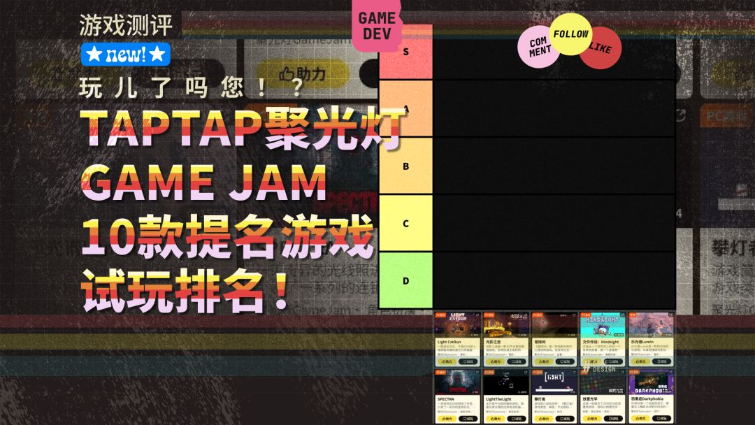 聚光灯游戏创作挑战的入围名单已经出炉啦! 我的《迷宫球》虽然参赛了😭遗憾没有入围,但还是非常兴奋能看到官方出炉的名单。 毕竟自己一个个玩太费时间,很难定位到好游戏。 这次我把入围最佳游戏的10款作品逐一试了一下,以自己的口味做了一个排行榜,推荐给大家。 也欢迎大家试玩以后在评论区分享自己的想法~ #TapTap聚光灯独立游戏 #发现好游戏 #聚光灯gamejam开发者日志 #游戏推荐