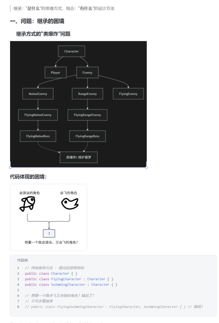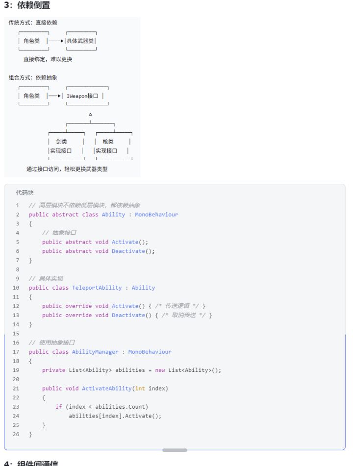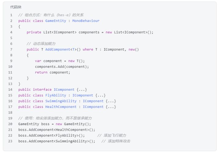 Unity本身就是组合的架构,组合模式在Unity中有天然的优势。组合模式也是天然地“面向接口”编程。过多地使用继承,容易造成类功能固化、不灵活,另一个视角来看:class有“类”和“阶级”的意思,“阶级”容易固化,这可不好。so,接受“组合”吧!回想起校招时候,曾被面试官要求写一个组合模式的系统,真是被狠狠地拷打了。如今也轻舟已过万重山,算是掌握“组合”的60~