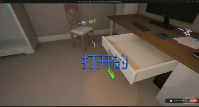 哈喽哈喽大家好,这个视频是我们最近的进度,当[关闭的]抽屉和[打开的]笔记本,在我们眼前通过词条交换而逆转状态时;当那把光剑,因为获得了[打开的]属性而被瞬间点亮,这是我们贯穿整个游戏的玩法,并且我们的技美为这个游戏制作了精美的交互效果。 好啦,这次的进度就先汇报到这里!感谢各位听我们唠叨,也谢谢所有在评论区给我们加油打气的朋友们,你们的每条留言我们都有看,真的是我们熬夜爆肝时的能量来源! #Ta