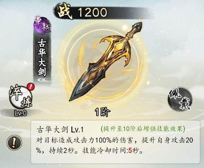 青龙蚴虬于左骖兮,日永星火,以正仲夏。品级:神话(刷新概率0.2%)天赋技能1级:对目标造成攻击力60%的伤害,提升自身暴击10%,可叠加5次,持续到战斗结束。技能冷却时间:1秒。2级:对目标造成攻击力72%的伤害,提升自身暴击10%,可叠加5次,持续到战斗结束。技能冷却时间:1秒。3级:对目标造成攻击力84%的伤害,提升自身暴击10%,可叠加5次,持续到战斗结束。技能冷却时间:1秒。
