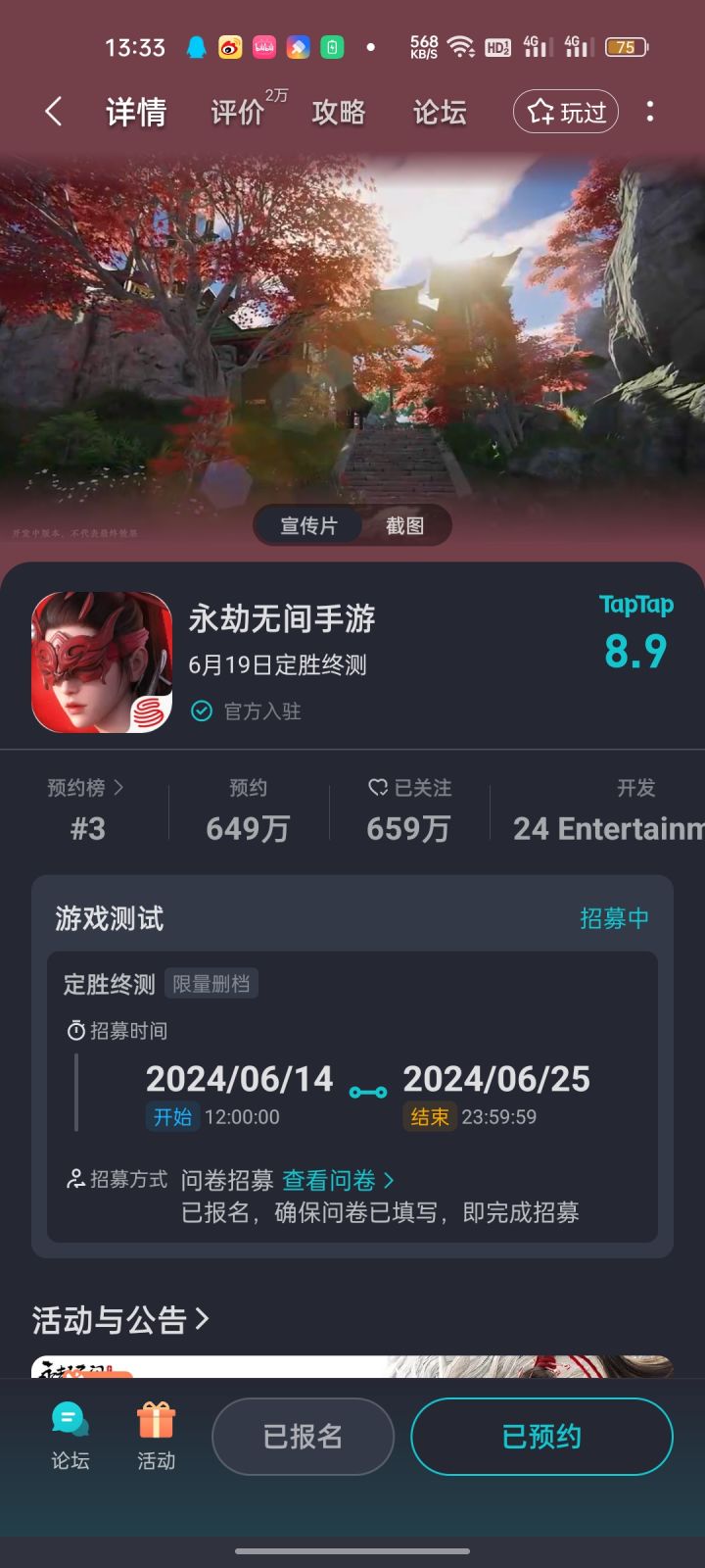 #TapTap游戏节夏日嗨玩征集令 #永劫无间手游定胜终测 #永劫无间手游定档 #永劫无间手游