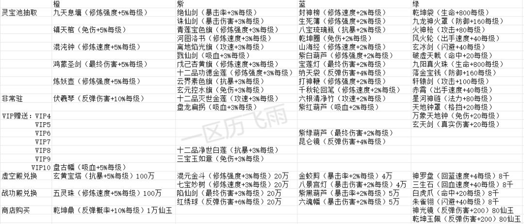 游戏内目前灵宝获得途径跟属性大全
