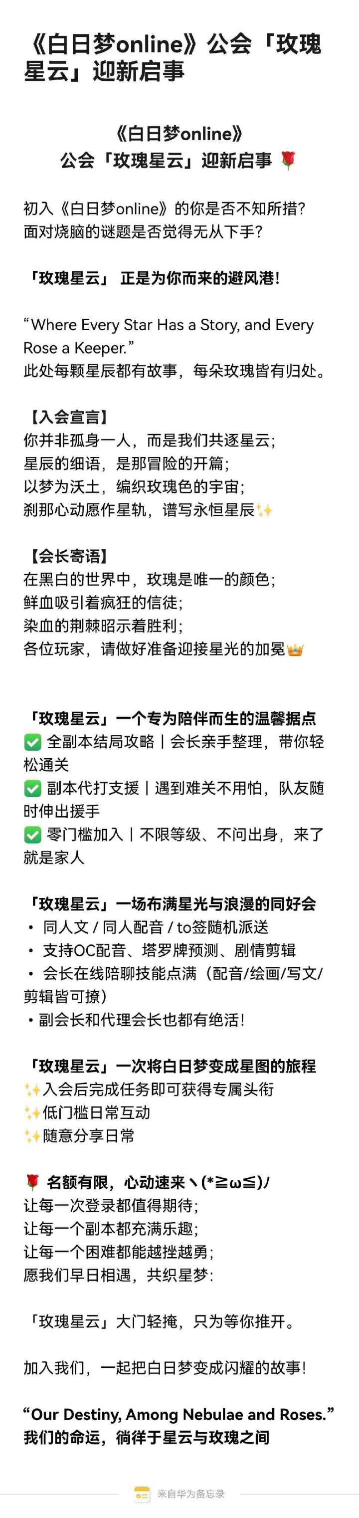 这里是玫瑰星云,公会氛围超级友好,喜欢抽象的宝子有福啦,会长带着你们疯~对新人友好,有不会的手把手教(≧w≦)欢迎个位宝子的到来(顺便提一嘴,公会有小情侣,可以磕cp)