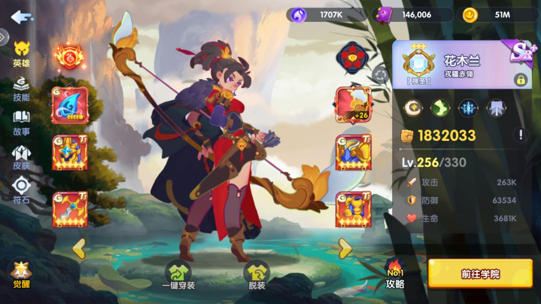 踏碎凌霄!大圣归来! 凌霄之上,十万天兵?一人足矣! 1技能 腾云入霄:偷袭一下对方后排,全场高伤害aoe 附带免控 2技能 如意神兵:锁定血最少的进行攻击 附带斩杀 3技能 兵来将挡:每第三次攻击会造成aoe 并且减免远程伤害(棍花[表情_狗头]) 4技能 金蝉脱壳:获得高额闪避,血少后会召唤分身,在后面偷偷回血。 专武获得高额闪避,增加保命能力。还能刷新突袭技能。 英雄故事就不用我来说啦,我还