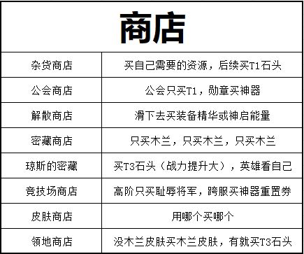 玩了几天这个游戏了,差不多弄明白商店了,给大伙讲讲。(别杠,你杠你有理)省流版游戏对比别的卡牌,商店算少的,不过白嫖的内容不少,注意看一下。一、杂货商店没有特别要注意的,看自己需不需要买t1就行(到一定关卡就有了,我也不知道多少),钻石足够可以每天用200钻刷新两下,买重铸券重铸装备属性。如果急需资源的话也可以看一眼。二、公会商店①工会商店记得每天打工会狩猎拿币,只买t1(打完22章