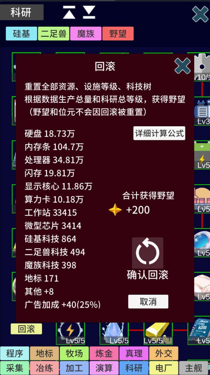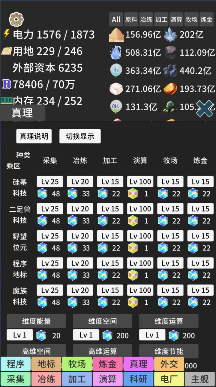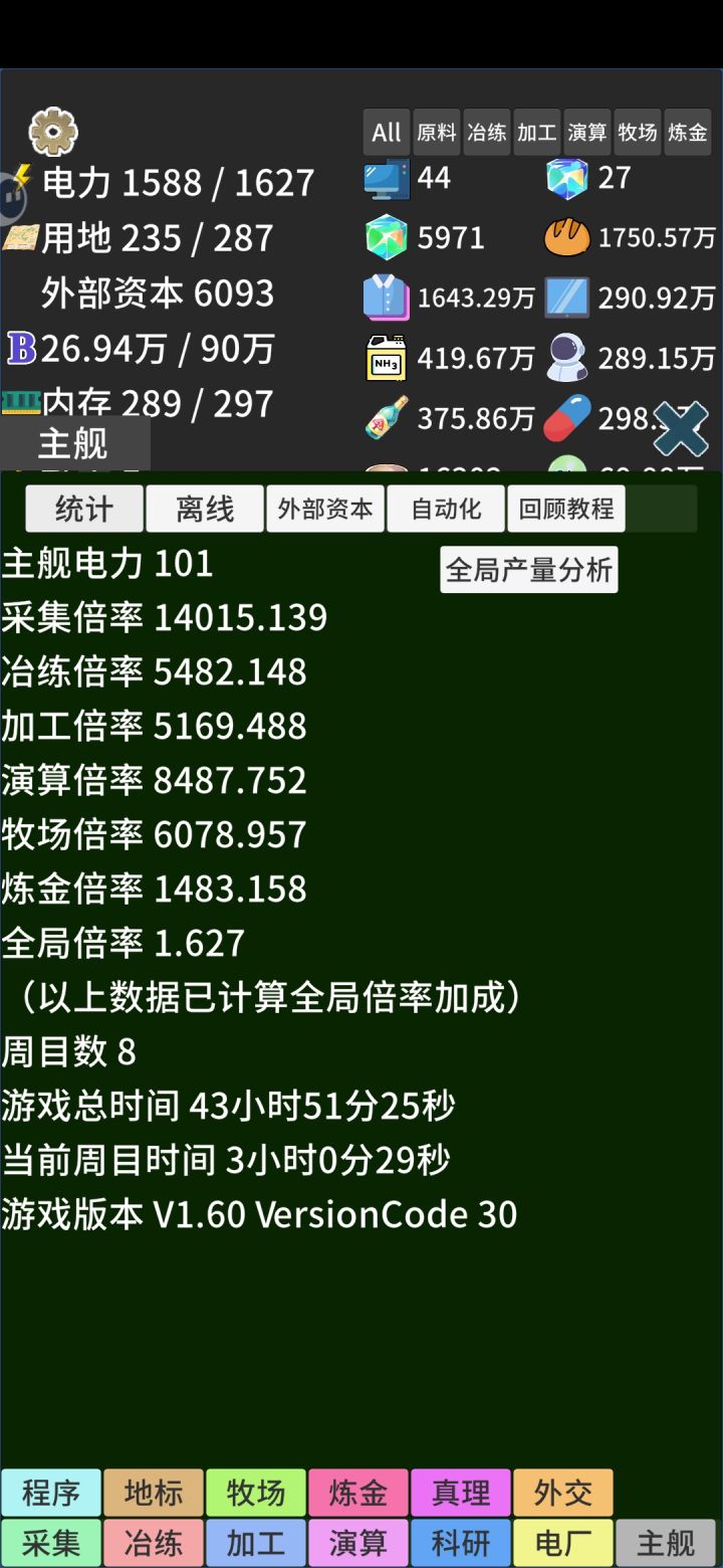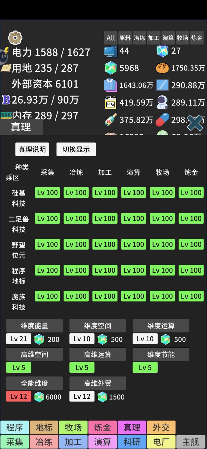 这这游随着游戏的更新,如果想肝真理的话,还是建议前期先速刷野望,我这个账号没有刷野望科技,到后期简直就是难熬。