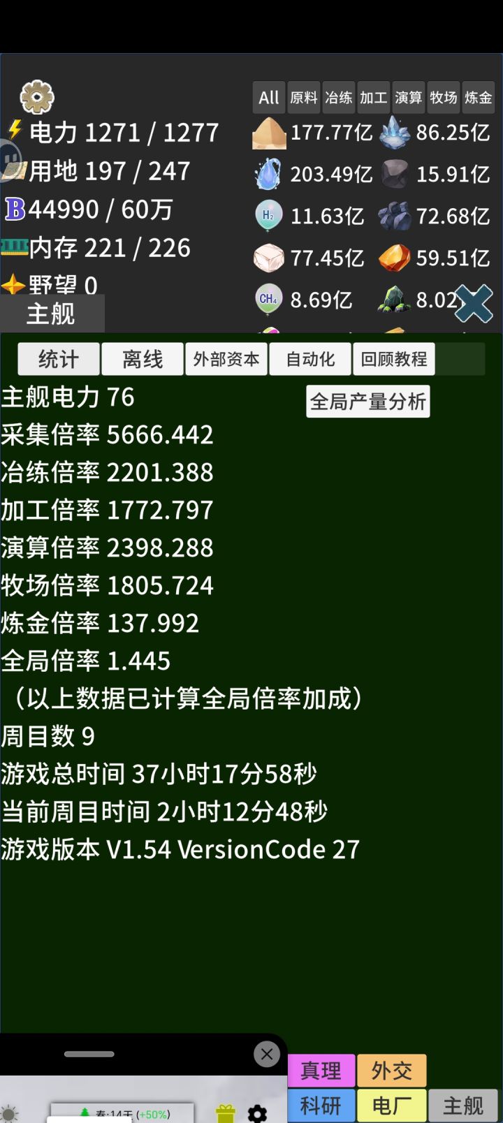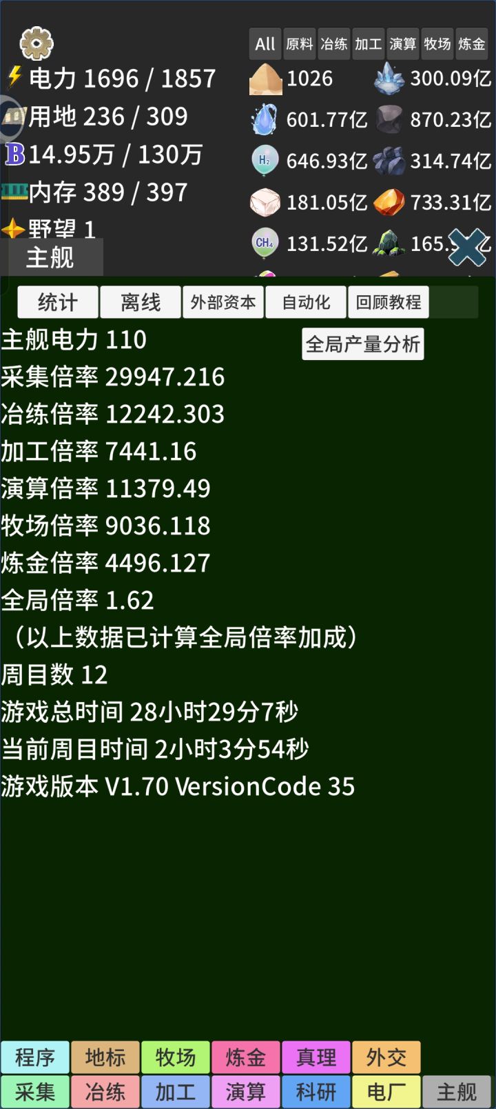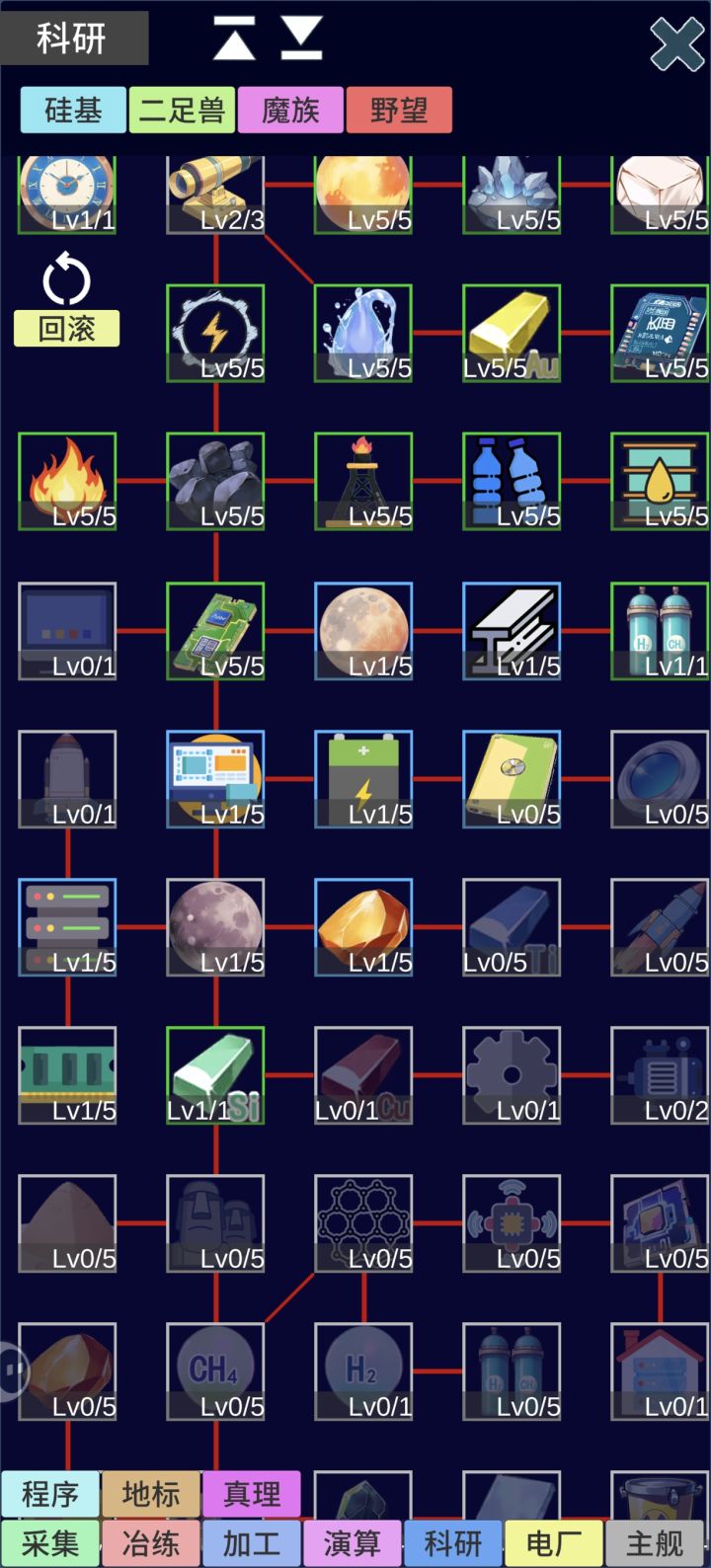 这这游随着游戏的更新,如果想肝真理的话,还是建议前期先速刷野望,我这个账号没有刷野望科技,到后期简直就是难熬。