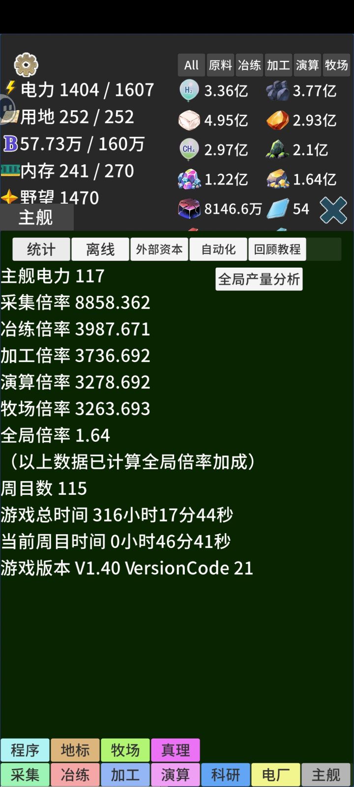 这这游随着游戏的更新,如果想肝真理的话,还是建议前期先速刷野望,我这个账号没有刷野望科技,到后期简直就是难熬。