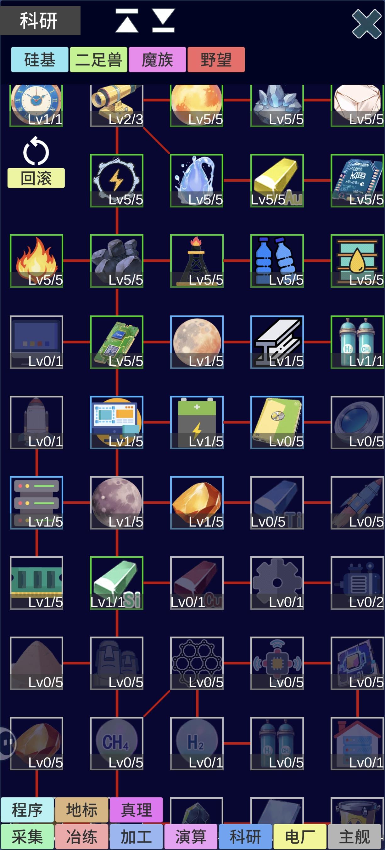 这这游随着游戏的更新,如果想肝真理的话,还是建议前期先速刷野望,我这个账号没有刷野望科技,到后期简直就是难熬。