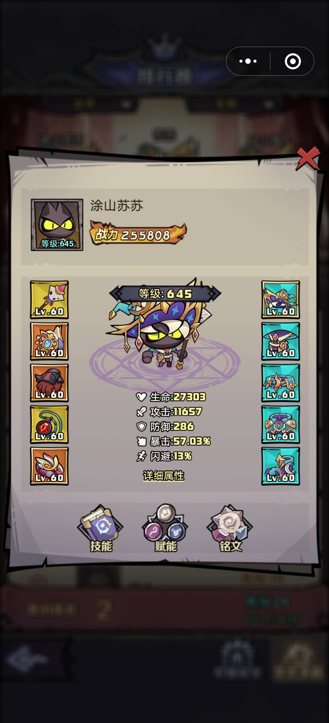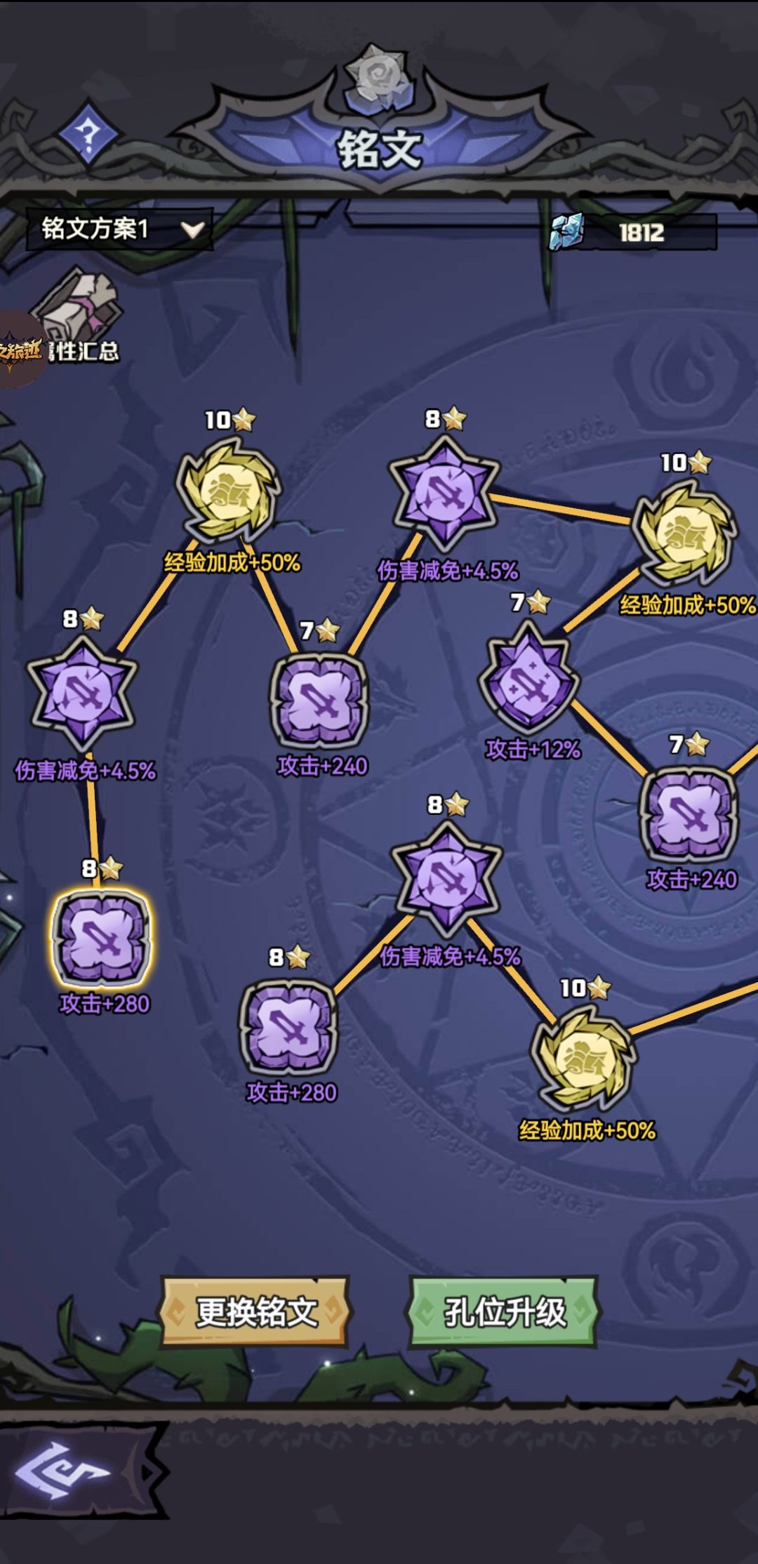 一、等级冲榜 1.不用关注通关时间,能过就行,最重要是经验,几星都能拿奖励。这游戏前期后期奖励都是金装盒子,一点区分都没。 2.等到解锁宠物后先把宠物升满星,有经验加成。有条件的看图鉴先把特务兔解锁了,有5%经验加成。 3.等到解锁铭文后,选择攻击,攻击百分比,减伤(自行更换),和经验加成,一定要先升级经验加成。注意:最下面一排的铭文槽用钻石解锁,有条件要冲榜的一定要先把下面的解锁了。 同样买满体