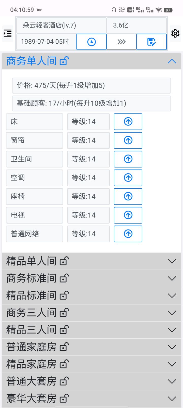 为什么房间解锁了图一那里还是只有一个房型啊?是因为我等级不够嘛?
