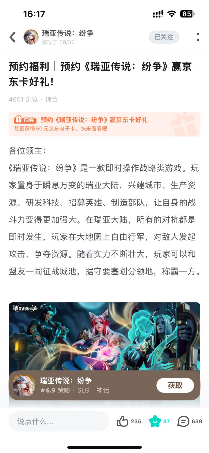 后天公测,没见到广告,好歹推荐tap首页啊。没人的slg等于死亡