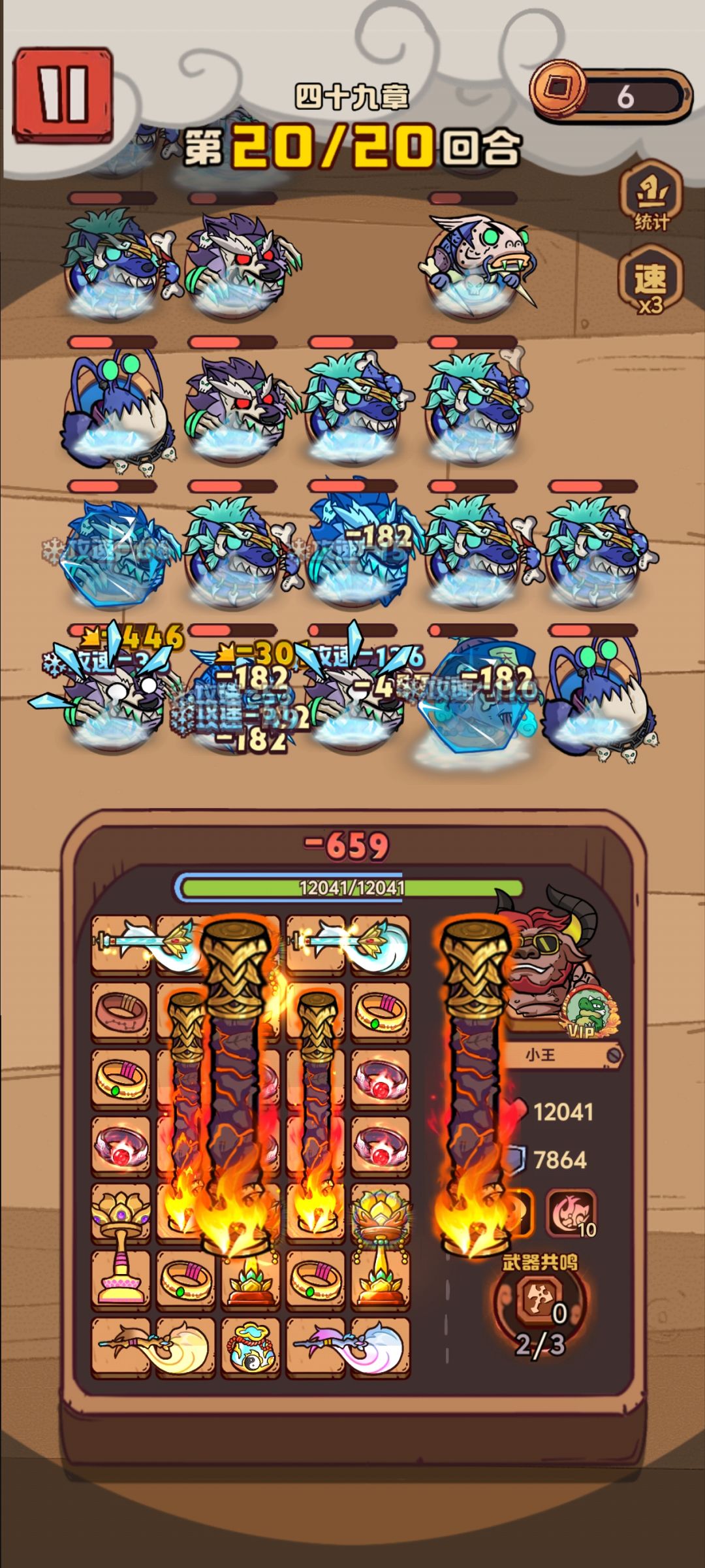 !玉不要乱用,尽量全用来抽人物(我只氪了双卡) 核心:棒子+扫帚+风戒+光盘+钱袋(应该是2个觉醒都可以我更喜欢用保留一个) 光盘到9级别后应该就是这套顶了,11级戒指之前,小关很好用。(后悔之前刷新商店没买戒指虽然买了也升不起) 核心思路就是风戒攻速加怒气 配上光盘的折射+加扫帚的冰霜附加给周围武器(扫帚有敌人冰霜加受到的暴击伤害)全场冰缓,棒子吃到爆伤收益。 开局优先顺序:棒子-钱袋 -扫帚-
